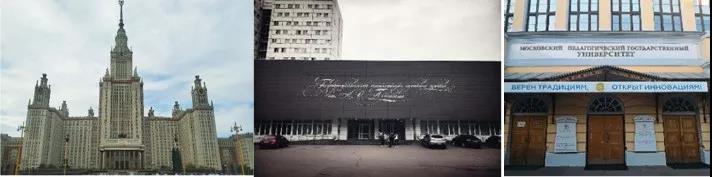 (从左至右:莫斯科国立大学、国立普希金俄语学院、莫斯科国立师范大学)