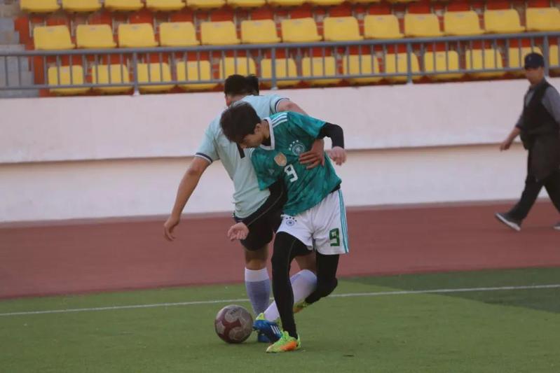 中场轮换:7号张小乔换下4号刘子轩 22号胡润琪换下9号胡泽群。下半场比赛开场5分钟时,对方前锋试图带球过人但被我方后卫拦截。