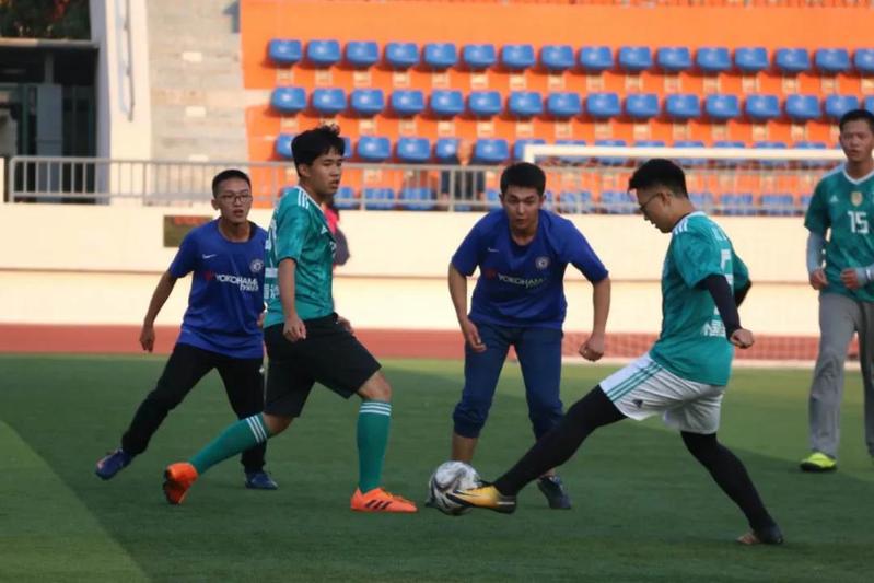 上半场过半,10号男足队长邢飞宇受伤下场,我方进行了人员的调整,5号换下10号 ,12号换下17号。比赛继续进行,双方对抗也愈发激烈。在对方一次进攻中,我方4号队员从对方脚下抢到球传到20号队员脚下,成功解围 。随后上半场结束,但双方均无建树,比分维持在0:0。