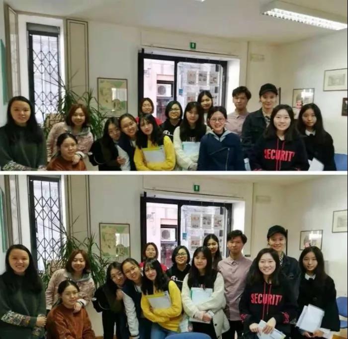 在学习方面,佩鲁贾外国人大学高度重视我班同学学习情况,学校接待处负责人Laura女士及学校语言课程负责人MauroPichiassi教授都给予了大家极大的帮助。到达意大利的第三天,同学们便开始了各个级别课程的学习。佩外课程类型丰富,有语言与文化课、视听课、语音学与音韵学、商业术语和贸易来往信函要素等拓展和专业课程。同学们有了国内两年的专业学习作基础,如今体验着全意语式课堂和原汁原味的语言环境,与各国员工聚在一起进行交流,互相学习,受益匪浅。意大利老师的授课风格非常有趣,课堂气氛十分活跃。同学们正在逐渐适应意大利老师上课的节奏,并在适应的过程中寻找最佳的学习方法。在前两周的学习中,同学们课堂表现活跃,积极表达自己的想法,受到了佩外老师们的肯定。