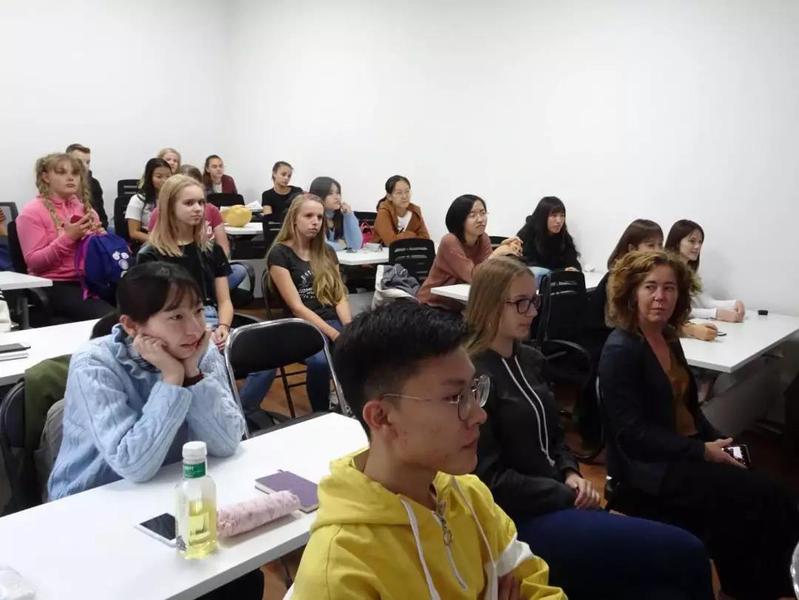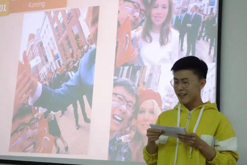 Kandinsky College的两位带队老师在会上发表了讲话,详细介绍了Kandinsky College的发展情况和特色教学。参会的荷兰员工们展示了他们在中国各地游学期间制作的视频。每一位同学都上台进行了自我介绍并讲述了他们学习中文的故事。
