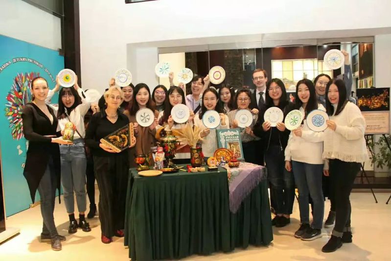 图为我司2017级俄语专业员工参加 “俄罗斯实用装饰艺术”主题活动