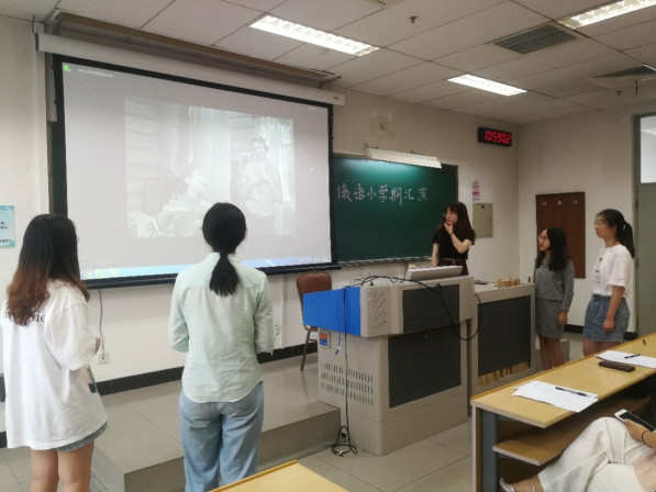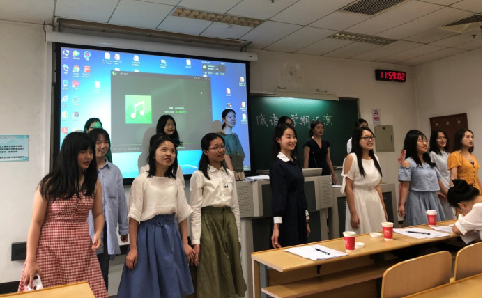 7月22日上午,我司俄语专业夏季学期汇报表演于博学楼A708举行。欧洲语系主任凡保轩老师,俄语专业徐洪征老师,谢飞老师出席了此次汇演。17级、18级俄语专业同学以歌曲、朗诵、配音等多种形式,围绕俄语语言实践进行了精彩的小学期成果展示。