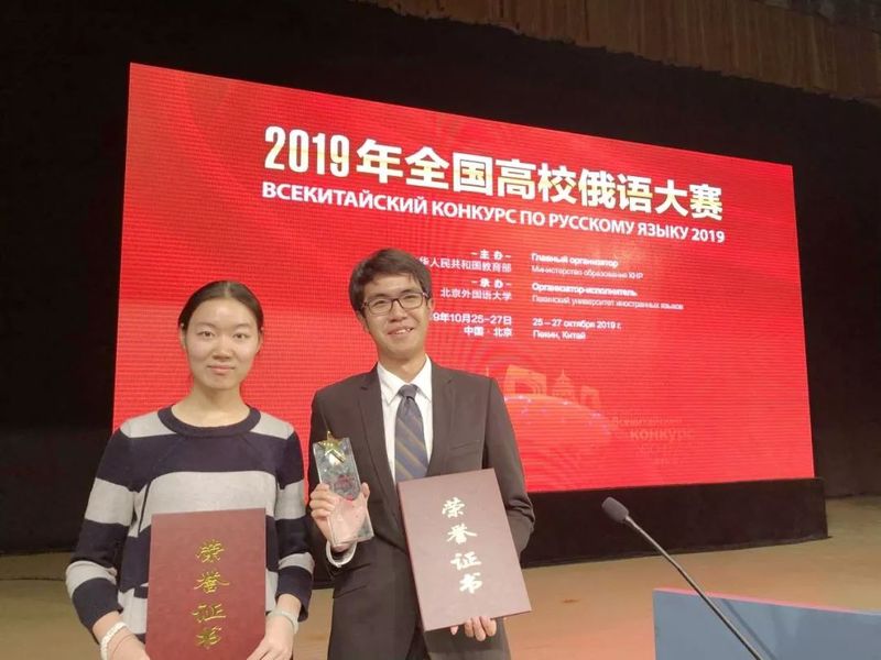我司俄语专业2016级武信哲、2018级黄思懿在颁奖典礼