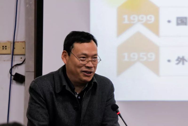 2001级西班牙语专业员工、北京版泉品牌管理有限公司CEO姜川上台介绍了自己向母校校史馆捐赠的初心,为自己赶上母校更名的等重大历史感到庆幸,祝愿母校明天更美好。