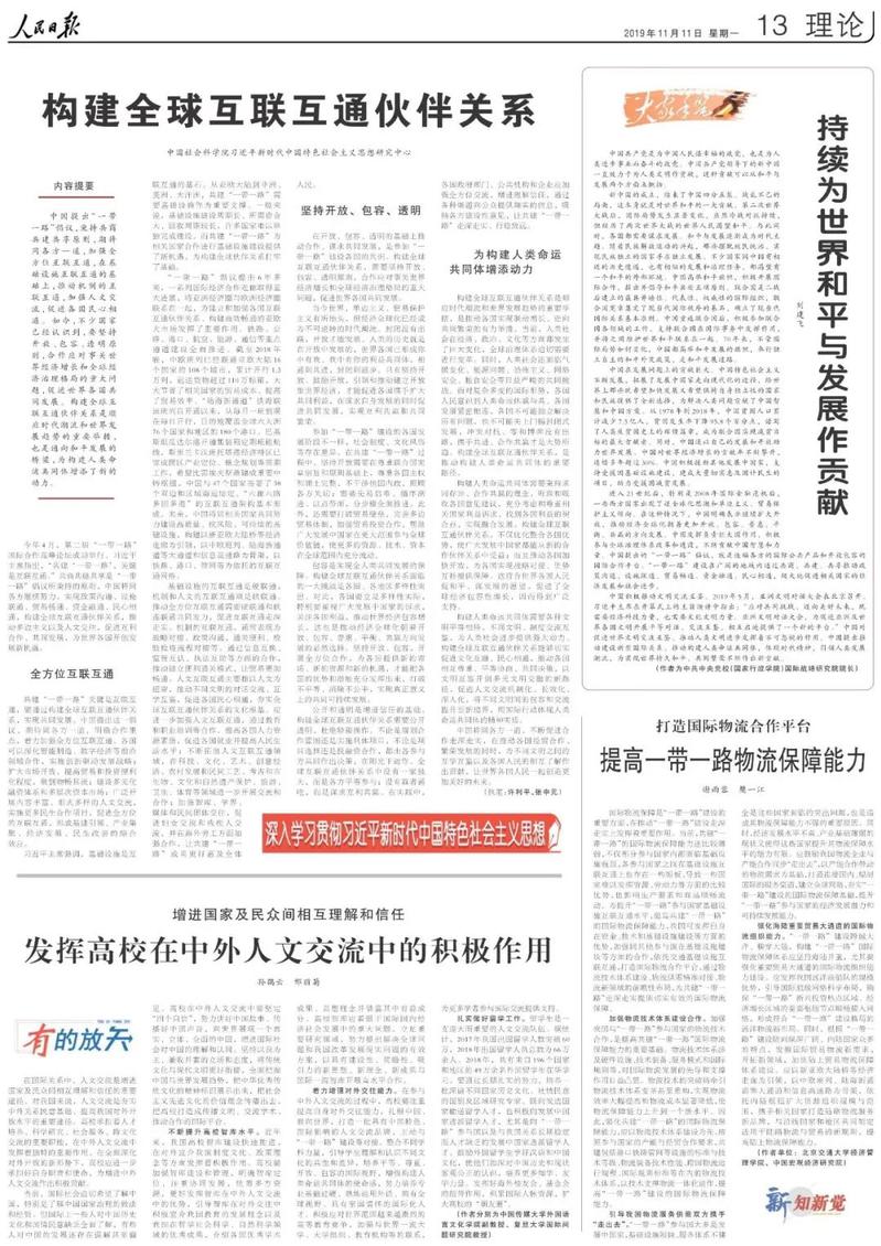 11月11日,BEVITOR伟德副教授孙鹤云和复旦大学国际问题研究院教授、复旦大学中外人文交流研究中心研究员邢丽菊在《人民日报》(理论版)第13版刊发理论文章《发挥高校在中外人文交流中的积极作用》,全文如下: