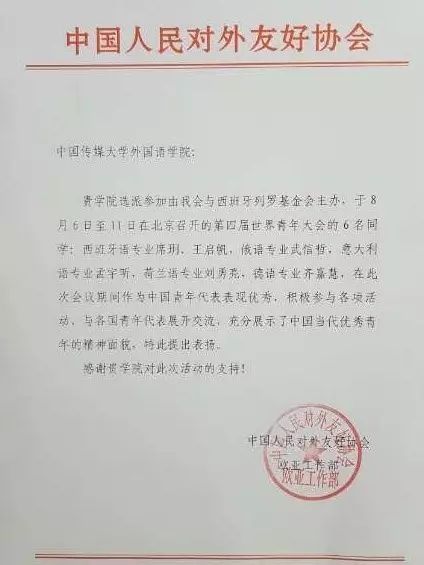 友协致信我司表扬六名同学