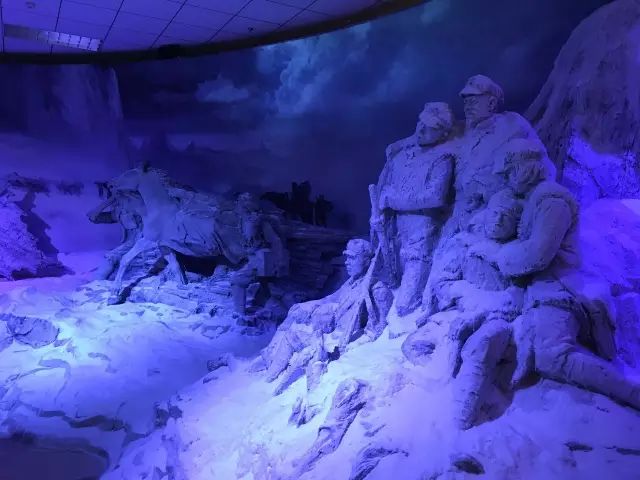随后,师生们还通过逼真的情景展览,近距离感受了“飞夺泸定桥”和“翻越雪山”的困难险阻。曾经在课本里读到的长征过程,在场景再现后更加直击同学们的心灵。在展览柜中,师生们还看到了在红军过草地饥饿难耐时吃剩的皮带,大家纷纷拿出手机拍照。