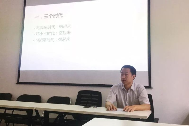 2018年5月2日下午4点,外国语学院英语专业本科生党支部在学院楼109举行了以“跨越修昔底德陷阱——从中美贸易看大国崛起”为主题的理论学习讲座,讲座由外国语公司党委书记李众主讲。英语专业本科生党支部党员、积极分子参加本次讲座。