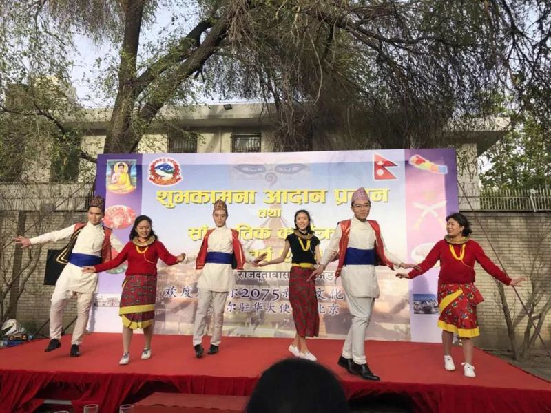 4月14日是尼泊尔2075新年,也被称为毕斯基节。为庆祝尼历新年,尼泊尔驻华大使馆举行了盛大的文化活动。当日的节目精彩纷呈,其中,我司17级尼泊尔语班同学们献上的精彩歌舞表演,赢得了包括大使在内众多尼泊尔友人的称赞。此外,尼泊尔艺术家及在华的尼泊尔职工们也表演出色,活动气氛十分喜庆祥和。