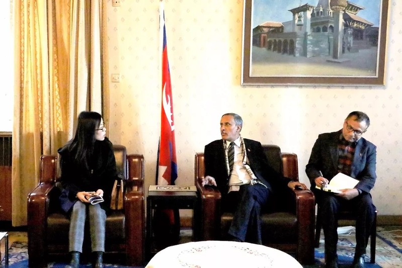 12月20日下午,尼泊尔语专业教师林薇、外教Shima及其先生以及17级尼泊尔语班同学受邀参观尼泊尔大使馆,尼泊尔驻华大使利拉·马尼·鲍德尔先生亲切接待。