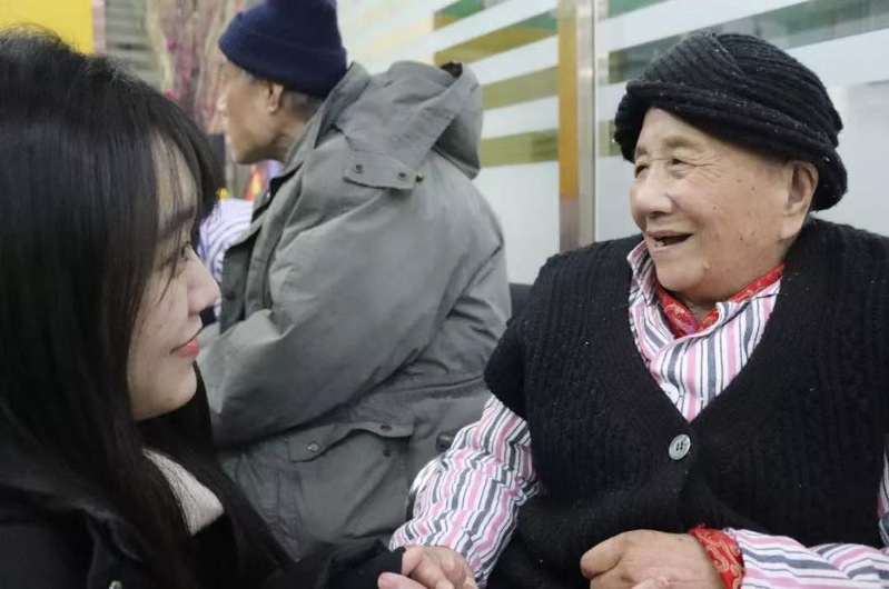 随后,同学们分别前往楼上的病房看望老人,与老人唠家常、献才艺。一位奶奶开心地说:“你们来之前我觉得冷,你们来之后我这心里呀也跟着热乎起来,有热情啦。”活动结束后,大家和老人们一一道别,并期待着再次相见。