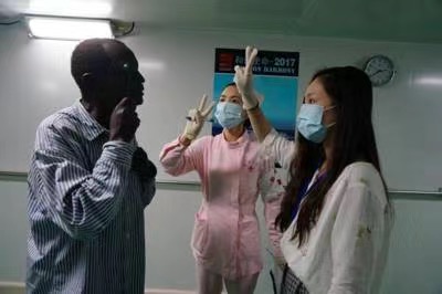 因此遇到不确定的翻译难点同学们则咨询老师,以保证能够准确、高效的完成中斯互译工作。在志愿工作的每一天,2015级斯瓦希里语班的同学都早上六点起床,傍晚戴月而归。上午和下午各自三四个小时的工作几乎没有休息时间。尽管如此,同学们还是坚守岗位,完成了每天600位病人的翻译任务。