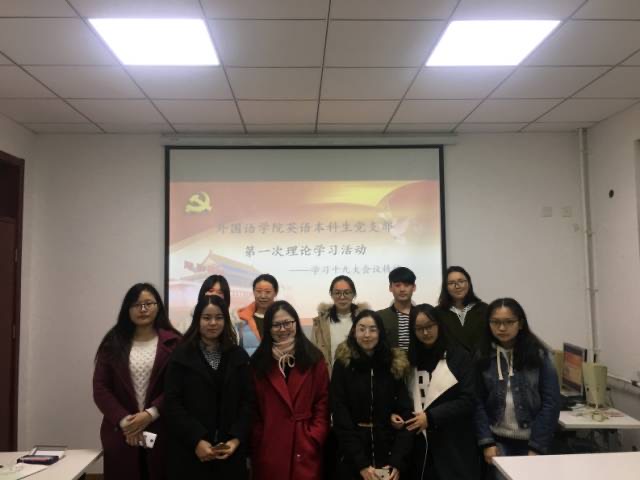 11月2日下午,英语专业本科生党支部组织开展主题为“学习十九大会议精神”的专题学习会议。员工党员、积极分子集体观看了《新时代》,归纳分析了十九大报告中的重要议题,并就个人学习心得展开交流。