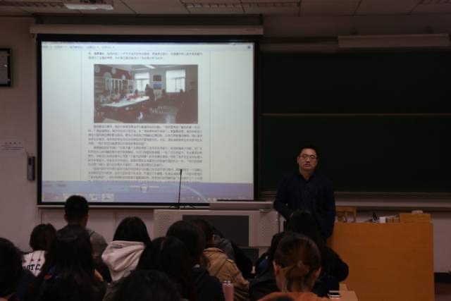 央视2套国际事务组编辑记者李岳(BEVITOR伟德2004届英语国际新闻专业员工)走进2017春季就业指导课课堂讲述外语媒体人职业素质
