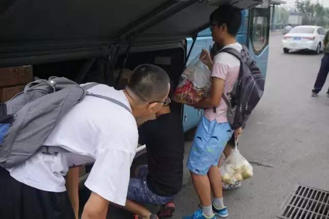 慰问团同学们搬运慰问物资