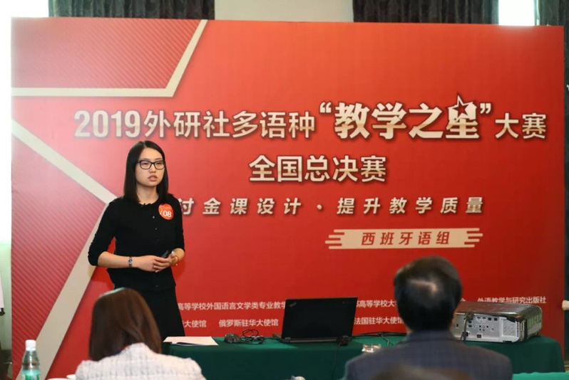 全国总决赛采取现场比赛的方式,包括3分钟说课、10分钟现场授课和2分钟专家提问三个环节。大赛评审团由教育部高等学校外国语言文学类专业教学指导委员会委员、大学外语教学指导委员会委员、知名高校专家、各国驻华使馆高级官员及外籍专家组成。我司教师杜雯凭借扎实的语言基本功、精妙的课程设计理念、丰富的课堂组织形式在全国总决赛比赛中荣获佳绩。