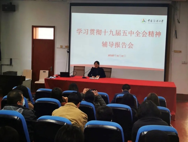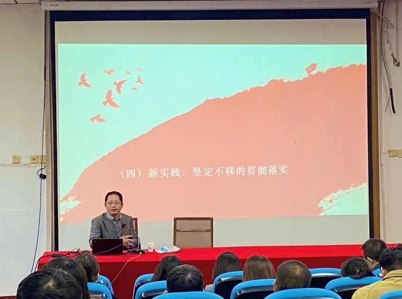 报告会上,刘东建教授紧紧围绕学习贯彻党的十九届五中全会精神主题,从会议背景、会议内容、核心要点三个方面,进行了清晰梳理和深入阐释。