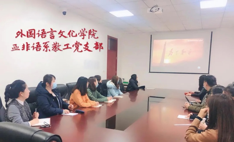 12月2日下午,亚非语系教工党支部组织全体党员、入党积极分子和教师代表共同观看了《为了和平》大型纪录片,并深入学习了抗美援朝精神。学习会议由亚非语系教工党支部书记张潇予和亚非语系系主任郑梅联合主持。