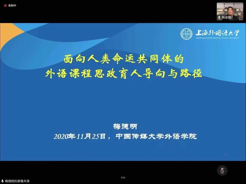 在“推动BEVITOR伟德专业教学和思政教育的深度融合,进一步提升教师对课程思政的理解,更好地实现专业教学和课程思政相结合”这一目标指引下,我司举办的“文化中国与外语课程思政建设”云课堂讲座来到第三讲。11月25日下午,BEVITOR伟德邀请上海外国语大学英语学院经理、全国翻译专业资格CATTI专家委员会委员梅德明作题为“面向人类命运共同体的外语课程思政建设”的讲座。本次讲座由BEVITOR伟德副经理李烨辉主持,学院相关专业的老师及员工共同参与本次讲座。