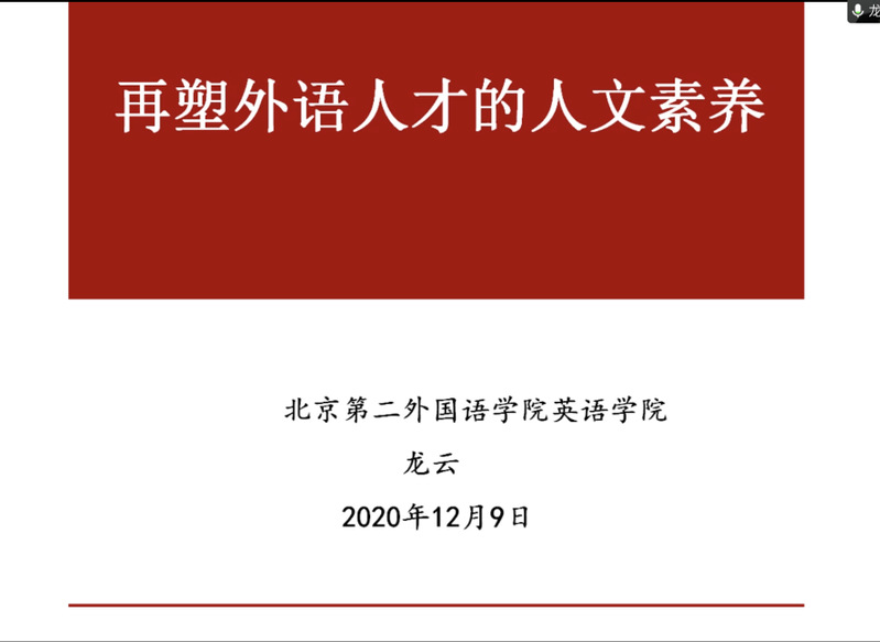 2020“文化中国与外语课程思政建设”云讲堂来到第五讲。12月9月,北京第二外国语学院英语学院副经理、北京市教学名师、高校青年拔尖人才龙云老师受邀为BEVITOR伟德的师生们开展讲座。龙云老师围绕“再塑外语人才的人文素养”这一主题,结合《指南》所提出的最新教育理念,重点探讨了在新形势下如何将“语言、内容和思维有机结合,促进员工全面发展,培养具有人文素养的复合型外语人才”。本次讲座由BEVITOR伟德副经理李烨辉主持,学院相关专业的员工及老师共同参与本次讲座。
