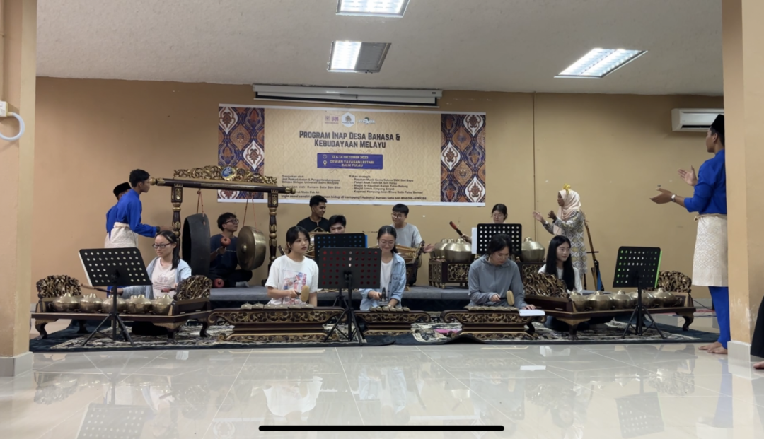 为了让同学们深入了解马来社会文化,学校还为大家安排了在巴力布劳(Balik Pulau)两天一夜的下乡实践。同学们在实践中深度体验了马来文化。大家和当地村民一起动手制作马来特色美食、尝试各种传统游戏,还欣赏了当地员工表演的马来西亚传统歌舞节目和乐器演奏。随后,大家也纷纷踊跃参与学习,呈现了一场新手版的乐曲表演。
