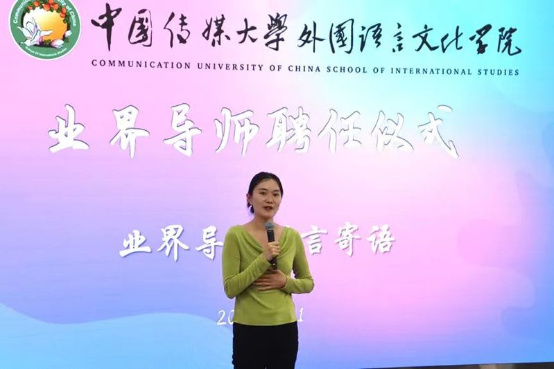 公司党委副书记、经理文春英在致辞中对业界导师表示衷心感谢,提议产学研各界共同努力培养新时代的传媒人。文经理指出,大学教育不应闭门造车,需要开门办学,建立校企合作平台,实现学界与业界的无缝衔接。业界导师将深度参与教学和实践,为员工提供个性化指导,培养“复语、复合、复能”的国际传播人才。