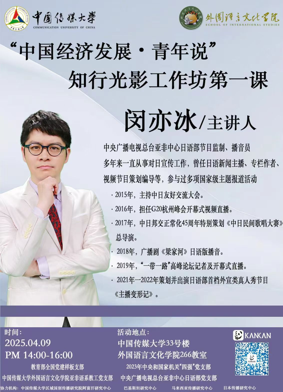 2025年4月9日,我司亚非语系教工党支部与总台亚非中心日语部党支部共建“中国经济发展・青年说”知行光影工作坊第一课即将举办。本次工作坊预计在4月~5月持续举办8课次,是继2024年两支部联学共建活动达成共识后的又一实践成果。参与本次工作坊的员工汇聚了亚非语系主要语种54人,两支部将派出青年骨干,指导并支持员工们作品创作与成果转换。