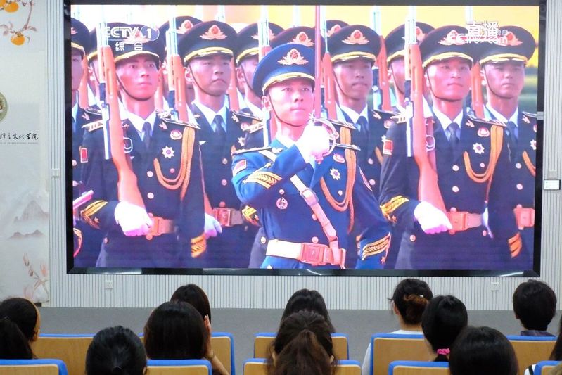 上午9时,伴随着雄壮的国歌声,阅兵仪式正式拉开帷幕。此次阅兵以 “纪念抗战伟大胜利、弘扬抗战伟大精神” 为主题,编设空中护旗梯队、徒步方队、战旗方队、装备方队、空中梯队等多个方阵,集中展现我国国防建设成就与新时代军人风貌。观看过程中,现场不少同学眼含热泪,为祖国的繁荣强盛感到无比自豪。