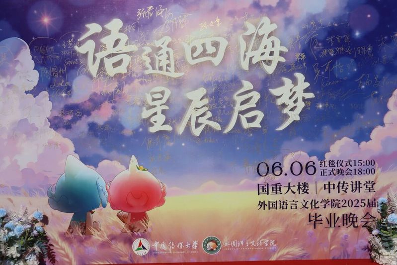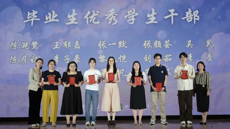 公司党委书记李烨辉,经理文春英,副经理刘颖、谢飞,欧语系主任修春民,英语系教工党支部书记张彤和2025届毕业年级班主任、任课教师代表以及辅导员共同出席晚会。我司2025届全体本科毕业生、硕士毕业生携亲友参加。