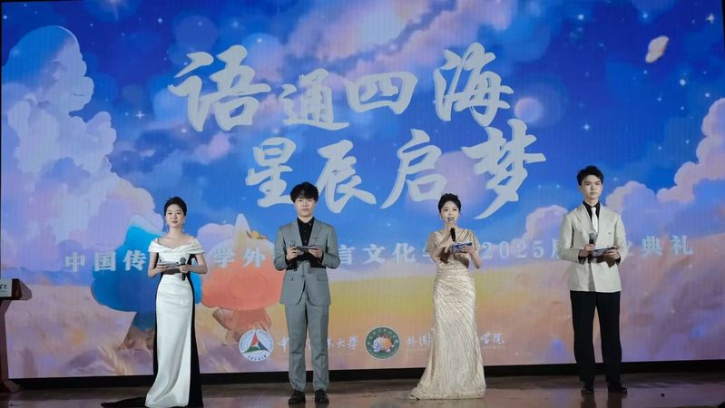 晚会由2021级双播刘亦菲、2021级双播胡俊宏、2021级翻译王郁嘉和2023级中西双播王弘毅共同主持。